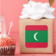 The Maldives flag is a red field with in the centre a moon on a green field. The used colours in the flag are red, white, green. The proportion of the Maldives flag is 2:3. The Flag of the Maldives was adopted in 1965. The first use of the current flag design was in 1926. The last change to the current Maldives flag design was in 1965.
