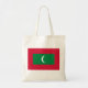 The flag of the Republic of Maldives is red with a large green rectangle in the centre bearing a vertical white crescent; the closed side of the crescent is on the hoist side of the flag. It was adopted on July 25, 1965.