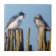Gary Luhm / SuperStock.com | USA, North America, Washington | USA, Washington State. Male and female Tree Swallow (Tachycineta bicolor) appear to squabble while on perches over Lake Sammamish.