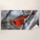 A bright red Cardinal adds a pop of colour on a dreary snowy day.
