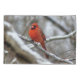 A bright red Cardinal adds a pop of colour on a dreary snowy day.
