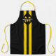 Personalised mens apron featuring a stylish black background, yellow sports stripes, your initial, and name. This personalised apron would make a great gift for father's day or a birthday!