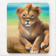 Male Lion Cub on a beach, this design features a male lion cub on a beach.