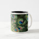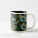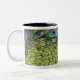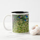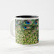 Male peacock (Pavo cristatus) displaying tail Two-Tone Coffee Mug