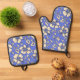 Malia Hawaiian Hibiscus Floral Periwinkle Oven Mitt & Pot Holder Set