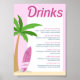 Malibu Beach Pink Party Bachelorette Cocktail Menu Poster