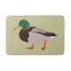 This illustrated shower or bath mat is perfect for lake houses and hunting lodges. It features a realistic style illustration of a male mallard duck set against a pale sage green background.