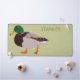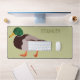 Add your own message to create custom decor for your office. This desk mat features a realistic style illustration of a male mallard duck set against a pale green background with your text in olive green coloured lettering.