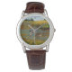 I was uncertain about the size being too small but it looks good. The case looks like aluminum (not shiny) and the time is easy to see. I changed the band because the leather doesn't go with my lifestyle.a. Exactly what I expected, nice yellow. It grabs peoples attention.