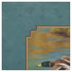 Male and female mallard ducks in flight over a golden pond, water rippling to reflect the colours of the background autumn foliage glowing in the sunlight. Accented with a matching teal green background.