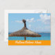 A photography of a beach umbrella against the wonderful blue sea, taken on the island of Majorca in the Mediterranean Sea in Europe.