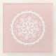 This white mandala sits on a dusty pink background. The colours are very subtle and calm. Part of the Bleujenn Mandala Collection.