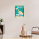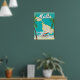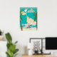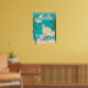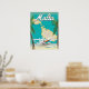 Malta beach & map travel poster featuring a sea plane landing on a beach and a map of the island.