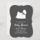 Include the big brother or sister fur baby in the celebration with this adorable Maltese dog baby shower design! Perfect for a puppy lover with a baby on the way. The Maltese is next to an adorable vintage carriage. The chalkboard grey background makes it perfect for a gender neutral or co-ed shower!