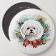 Maltese Christmas Wreath Festive Pup 6 Cm Round Badge
