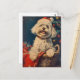 Sending festive cheer your way! This Christmas card features an adorable Maltese dog, adorned with a merry Santa hat. The fluffy white fur of the Maltese complements the jolly red hat, creating a heartwarming scene that captures the holiday spirit. Share the joy of the season with this charming card, as this festive pup is ready to spread smiles and warm wishes to your loved ones.