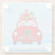 Maltese Dog In Car With Santa Claus Glass Coaster