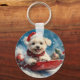 Maltese Dog in Sledge Let it Snow Christmas Key Ring