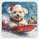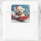 Maltese Dog in Sledge Let it Snow Christmas Square Sticker