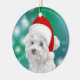 Maltese Dog Red Santa Hat Christmas Ceramic Tree Decoration