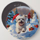 Maltese Dog Running in Snow with Christmas Hat 6 Cm Round Badge