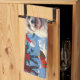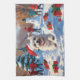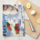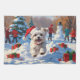 Maltese Dog Running in Snow with Christmas Hat Tea Towel