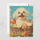 Celebrate Easter with the adorable and fluffy Maltese in this vintage-style postcard. Featuring the sweet dog surrounded by pastel Easter eggs, blooming spring flowers, and festive seasonal accents, this design is perfect for Maltese lovers, collectors, and fans of nostalgic holiday art. A delightful keepsake to spread Easter cheer.