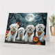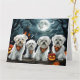 Unleash the spooky spirit with this eerie Halloween design featuring a pack of dogs under a dark, moonlit sky, surrounded by flying bats and glowing pumpkins. Perfect for those who love a touch of frightful fun with their furry friends!