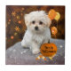 Adorable Maltese puppy, ready for Halloween celebration, custom design.