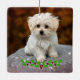 Maltese Puppy with Christmas holly Ceramic Ornament