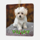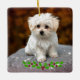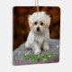 Maltese Puppy with Christmas holly Ceramic Ornament