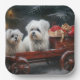 Maltese Snowy Sleigh Christmas Decor Paper Plate