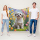 Malti Tzu Dog Spring Flowers Painting Fleece Blanket