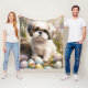 Malti Tzu Dog with Easter Eggs Holiday Fleece Blanket