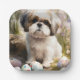 Malti Tzu Dog with Easter Eggs Holiday Paper Plate