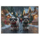 This festive design captures the joyful spirit of the holiday season, featuring an adorable dogs.Nestled in a winter wonderland, complete with a decorated Christmas tree, and beautifully wrapped presents. Snowflakes gently fall, adding a magical touch to the scene, while the vibrant colours of the holiday decorations create a warm and cheerful atmosphere.