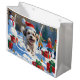 Malti Tzu Running in Snow with Christmas Hat Large Gift Bag