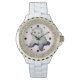 This watch is embellished with a graphic illustration depicting a cute and fluffy Maltipoo or Maltese and poodle mixed breed puppy in a seated pose.