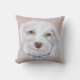 A Maltipoo, or Maltese and Poodle mixed breed dog, displays her stubborn yet loveable facial expression in this pastel artwork done on a taupe coloured paper.