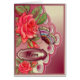 A butterfly flutters over red roses on a pink and cream scallop design with fancy tag. This design will make any mam feel she's a special person (as she is!) and is suitable for many occasions including birthday, mother's day, love you, thinking of you, best wishes, thank you etc. The word Mam is written in dark red script to match the colour scheme of the card and make the word pop from its creamy setting. The central image is a watercolor painting by Susan Alison of a beautiful red rose and a bud with fresh green leaves. A colourful butterfly tries to make up its mind where it's going to settle. The background is created from a scallop image with pearlised buttons to give a contemporary feel to the design.