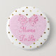 Pink and gold shabby chic pretty bow polka dotted "mum to be" baby shower buttons.