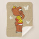 The fabric is really soft, and thick, I’m sitting here with it wrapped around me and it’s so warm! It’s really smooth and sleek on the printed side and fluffy on the back. I love it! Such good quality, so vibrant and clear, not blurry at all! See the photos I’ve attached, there’s no filters or anything on them!