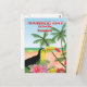 Mammee Bay Beach Jamaica travel poster, of an exotic toucan beautiful bird on the sandy beach.