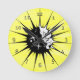 Cool wall clocks featuring a black sun with a man's face and stars inside the moon with a light yellow background. This cool art design on clocks would make the perfect addition to your home or office decor.
