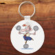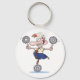 This design is a man balancing cogs. The man is standing on a cog and holding two. This man balancing cogs design looks great on this Keychain