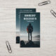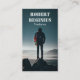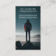 man carrying backpack standing on rock formation business card