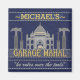 This funny, personalised design is perfect for decorating your man cave. It says, "[Your Name] Garage Mahal" and shows an outline of the Taj Mahal with hammers, screwdrivers and a little car that looks like it's parked in the middle. Easily add your name to the top. The colours are blue, grey and a golden yellow.