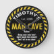 Man Cave Sign with Caution Tape Effect & Rules Round Clock