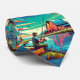 Man Fishing In a Pond By A Barn print on men's necktie.