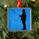 Man fishing with abstract blue background metal tree decoration